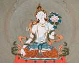 Graceful White Tara Thangka, Hand-Painted Traditional Tibetan Art