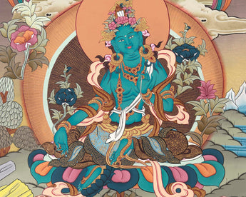 It goes without saying that every detail of a painting has a symbolic meaning. Regardless of your religious affiliation, a thangka can help you on your path to enlightenment, whether you practice Buddhism or have other religious convictions. Thangkas are paintings that depict deities with various iconographic elements and symbolism that encourage meditation on the teachings of the god they depict. Any thangka is intended to aid in the removal of the film of ignorance, which is a significant barrier to the road to enlightenment. The Thangka is revered as a holy item. They promote positivity, spread Buddhism's teachings, bring about peace, harmony, and oneness, and dispel any negative energy that may be there.