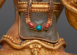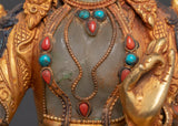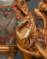 Our magnificent Crystal Green Tara statue, which represents the Bodhisattva of enlightened action, is made of crystal and intricately inlaid with sculpted coral and turquoise.