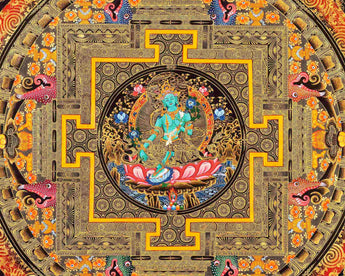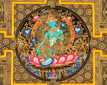 Green Tara Mandala Thangka Painting | Full 24k Gold Style