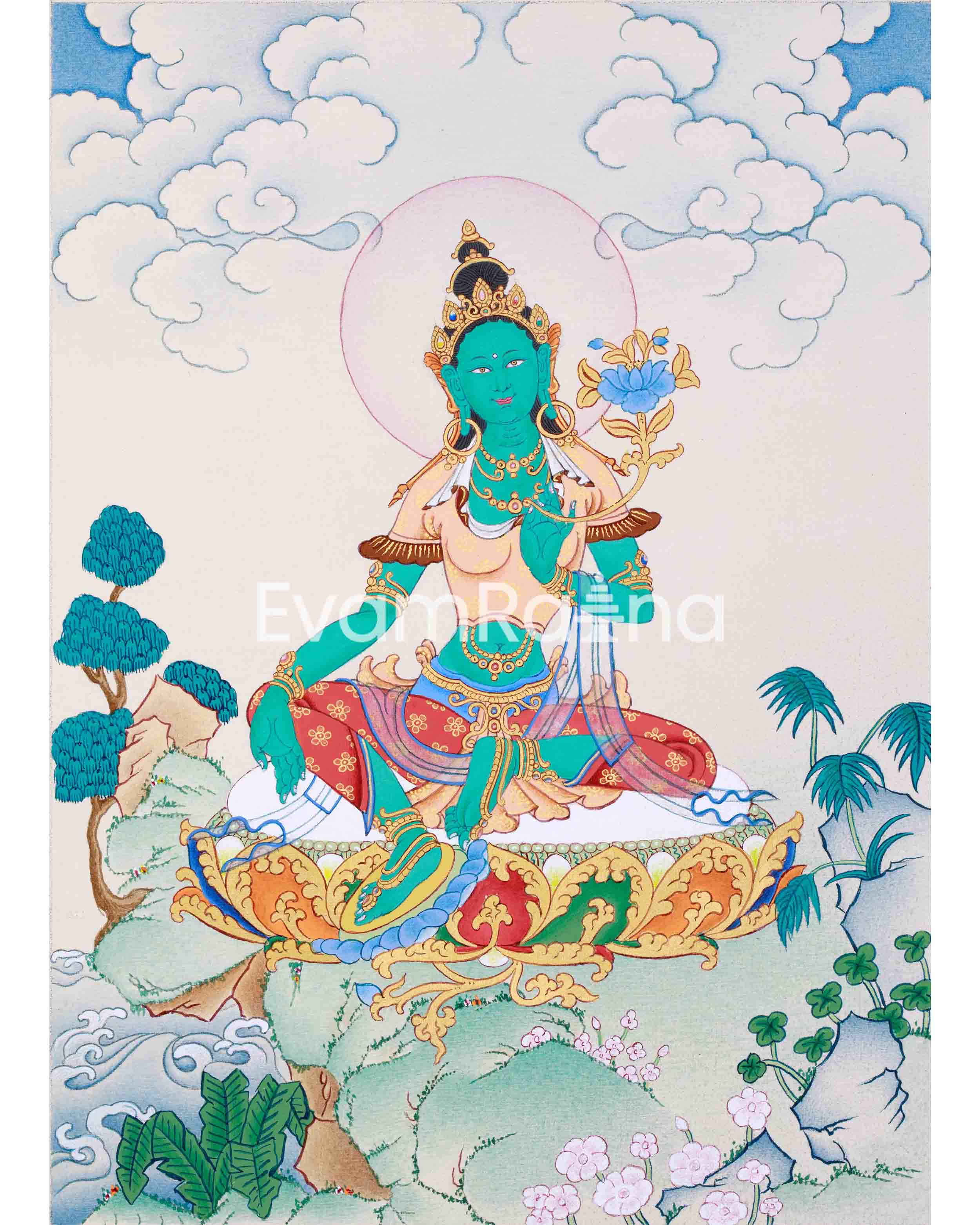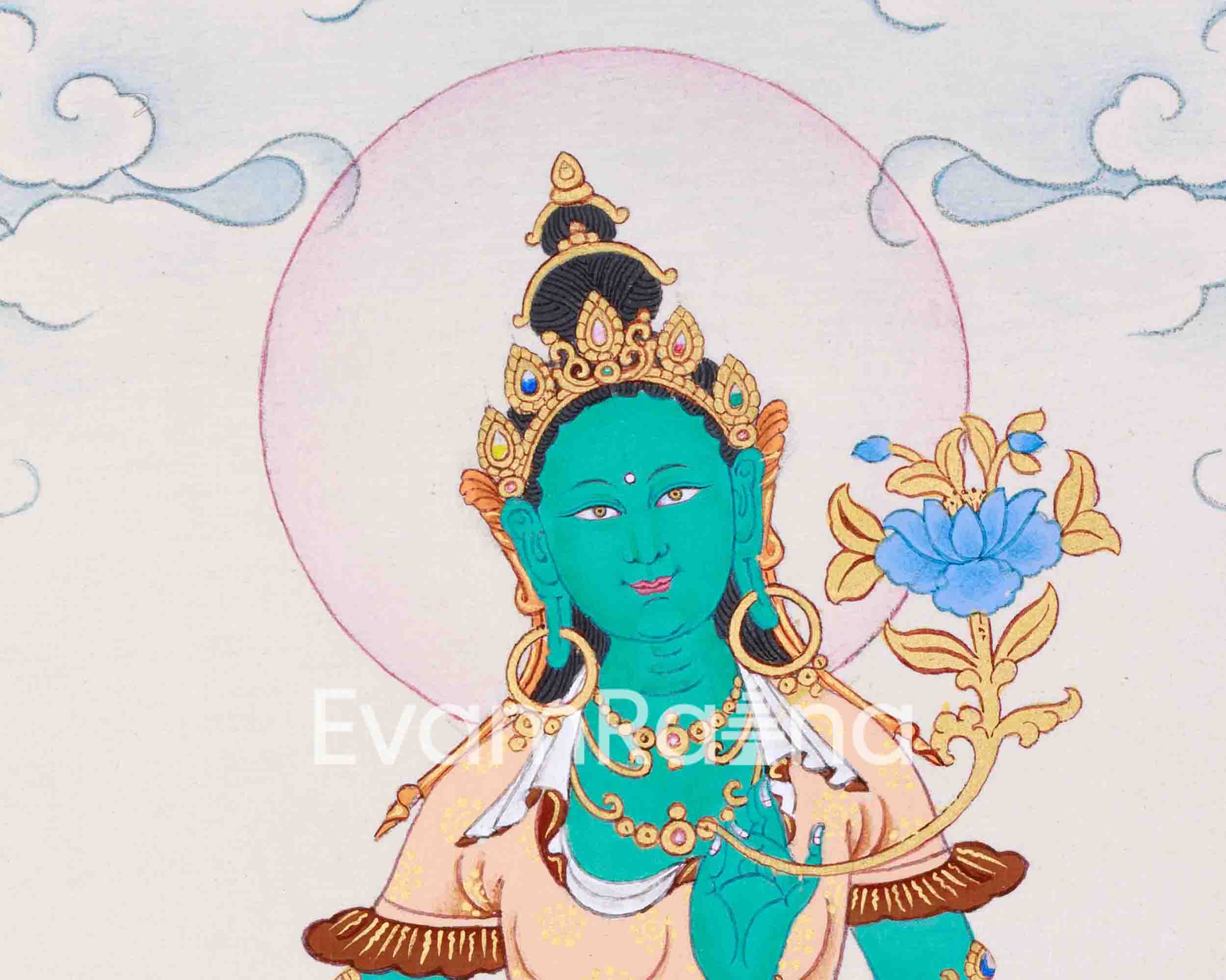 Green Tara Sacred Art | Hand Painted Divine Harmony Thangka | The Goddess of Healing