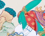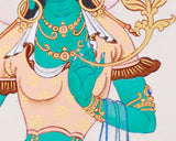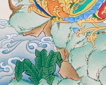 Green Tara, the epitome of sympathy and security in Tibetan Buddhism, graces this thangka with her peaceful presence. She stands for unending compassion and the ability to dispel fear. She is depicted in calming green, enhanced by the brilliance of 24K gold and the depth of natural stone colors. Green Tara is respected for her quick reaction to the enduring, everything being equal. Her picture in this thangka isn't simply a visual portrayal but an encouragement to associate with her energy, look for her endowments, and embrace her lessons on sympathy and freedom.