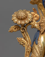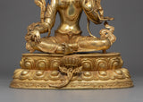 Using a traditional Himalayan sculpting method, we have meticulously hand-carved the statue of Green Tara which you can buy online anytime. The deity presented in the statue is depicted seated on a moon disc, Green Tara holding a lotus with both hands in a calm meditative gesture. The body is filled with different ornaments. The crown looks stunning on the deity. The body is molded using the copper body which is then glided with pure 24K gold. The intricate design pattern on the robe, ornaments, and crown took us months and months of work. The skillset of creating such art has been passed on for generations.