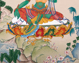 THIS THANGKA IS HAND-PAINTED IN THE TRADITIONAL KARMA GADRI STYLE AND THE QUALITY IS HIGH