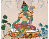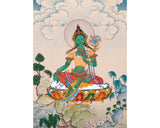 Green Tara Thangka- Tibetan Tara Painting, Hand-painted in Natural Stone Colors.