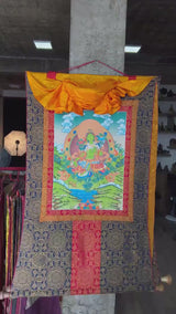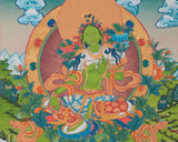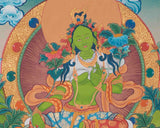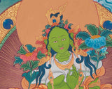 Green Tara Thangka With Brocade | Hand Painted Tara Thangka for Meditation
