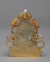 Discover the serene elegance of our Green Tara Turquoise Locket, which combines spirituality and artistry. This exquisite piece depicts the deity Green Tara, meticulously handcrafted on turquoise stone to represent peace and protection. The locket is adorned with silver and elegantly plated with 24k gold, heightening its divine allure. The intricate design is enhanced by the inlaid coral stone, which adds a vibrant touch to this sacred emblem.