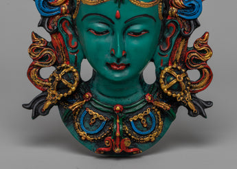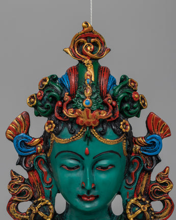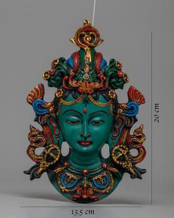 Green Tara Wall Hanging Face Mask | Traditional Tibetan Deity Art