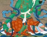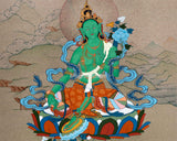 Green Tara's Serene Blessings | Goddess of Compassion in Thangka Art | Religious Decoration