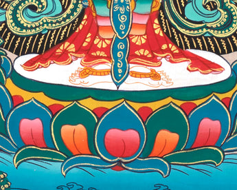 We have had this Thangka in our collection for over 20 years now. Our thangka was stored away for several years. We were thrilled to discover the quality and depth of these beautiful thangkas when we unveiled them and decided to showcase them online for everyone.