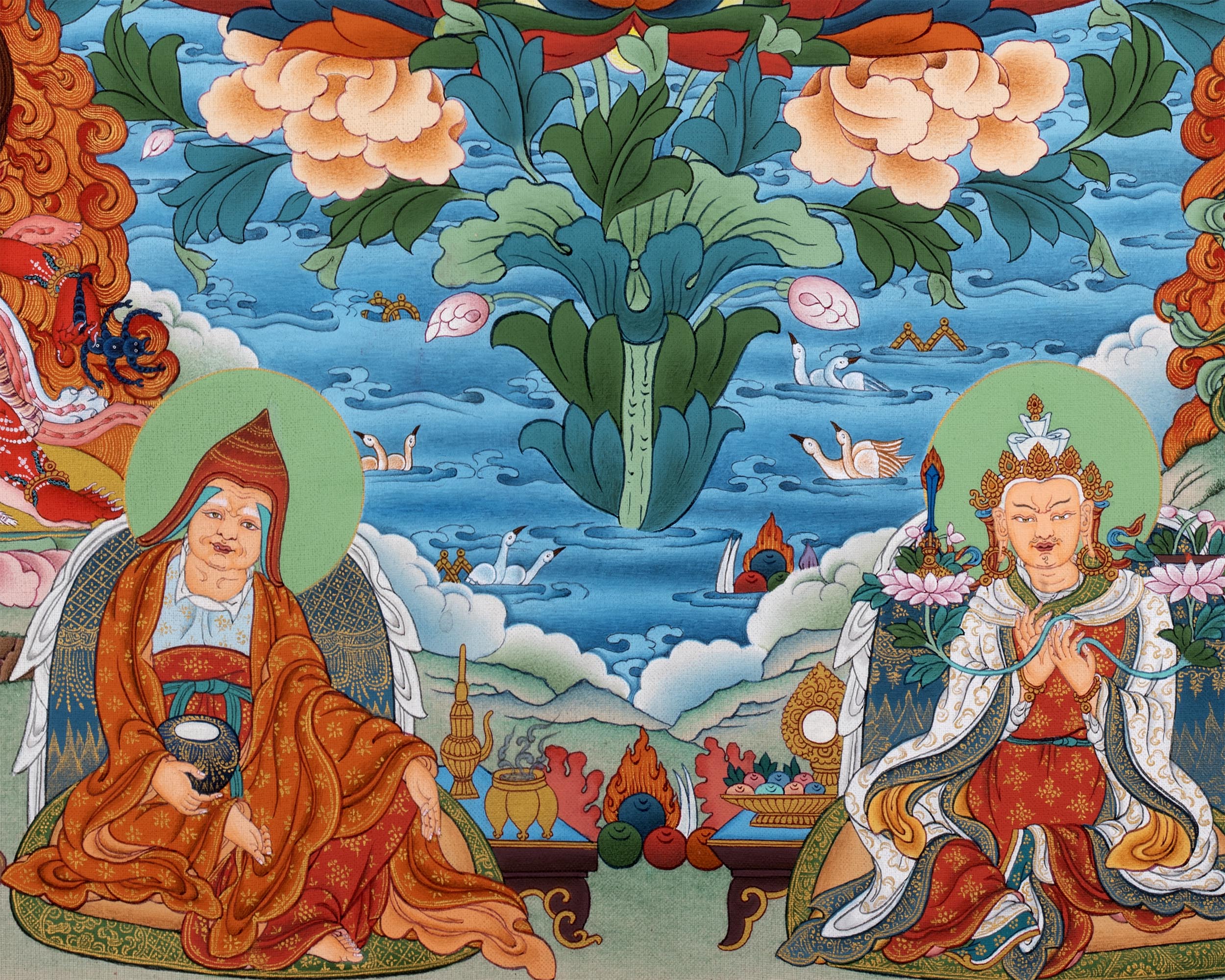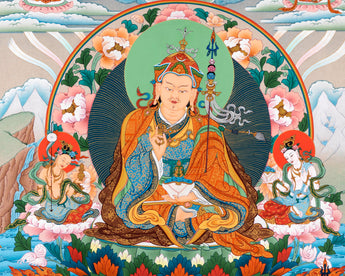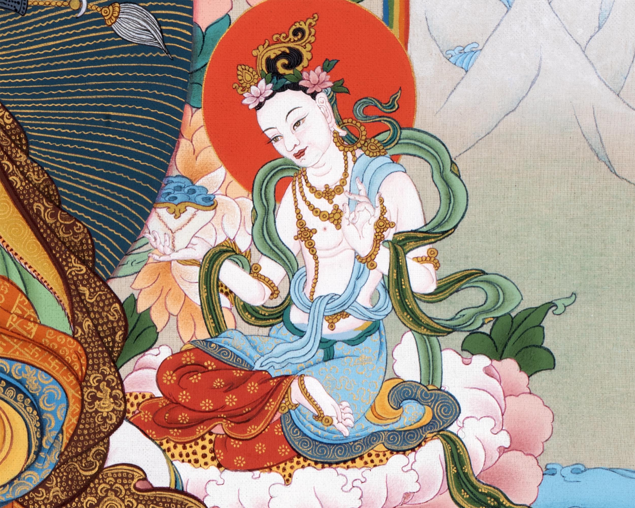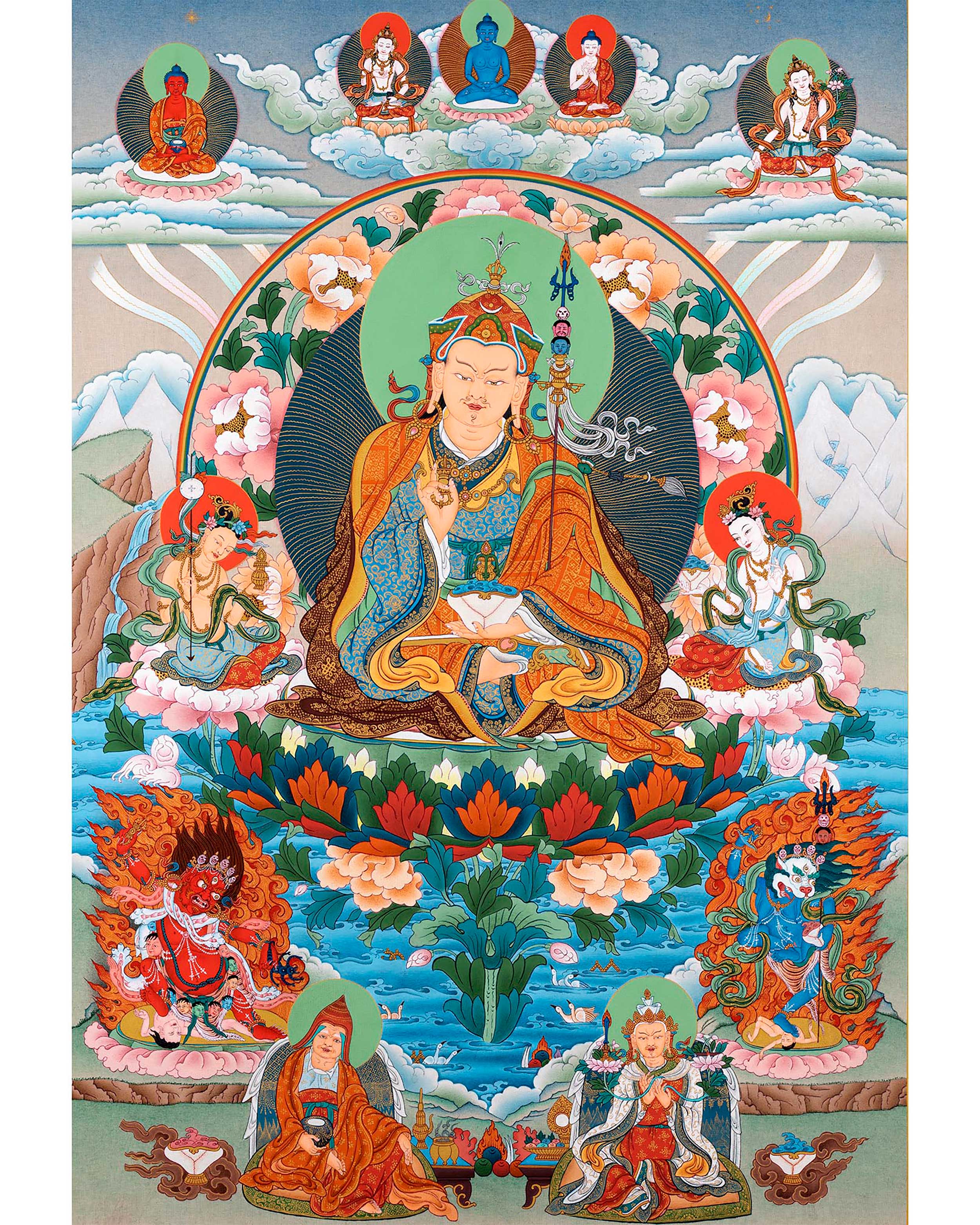 Guru Padmasambhava Thangka With Consorts, Buddhas And Bodhisattvas | Tibetan Art