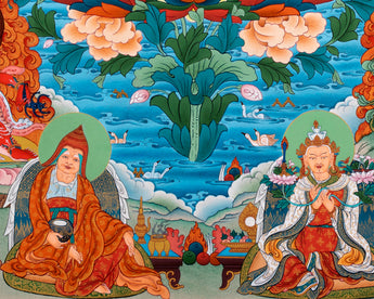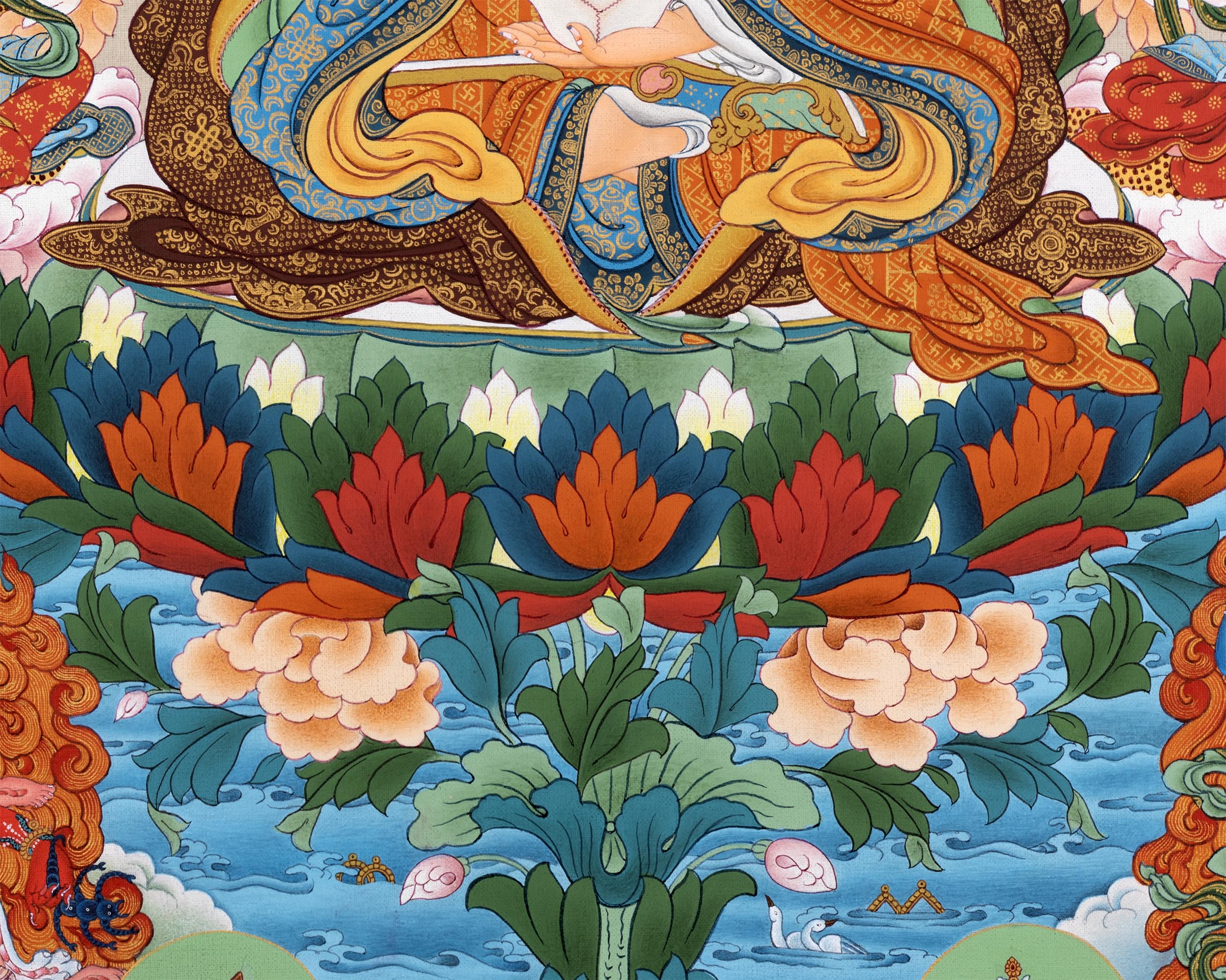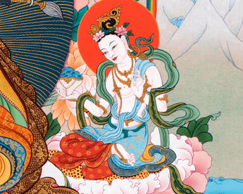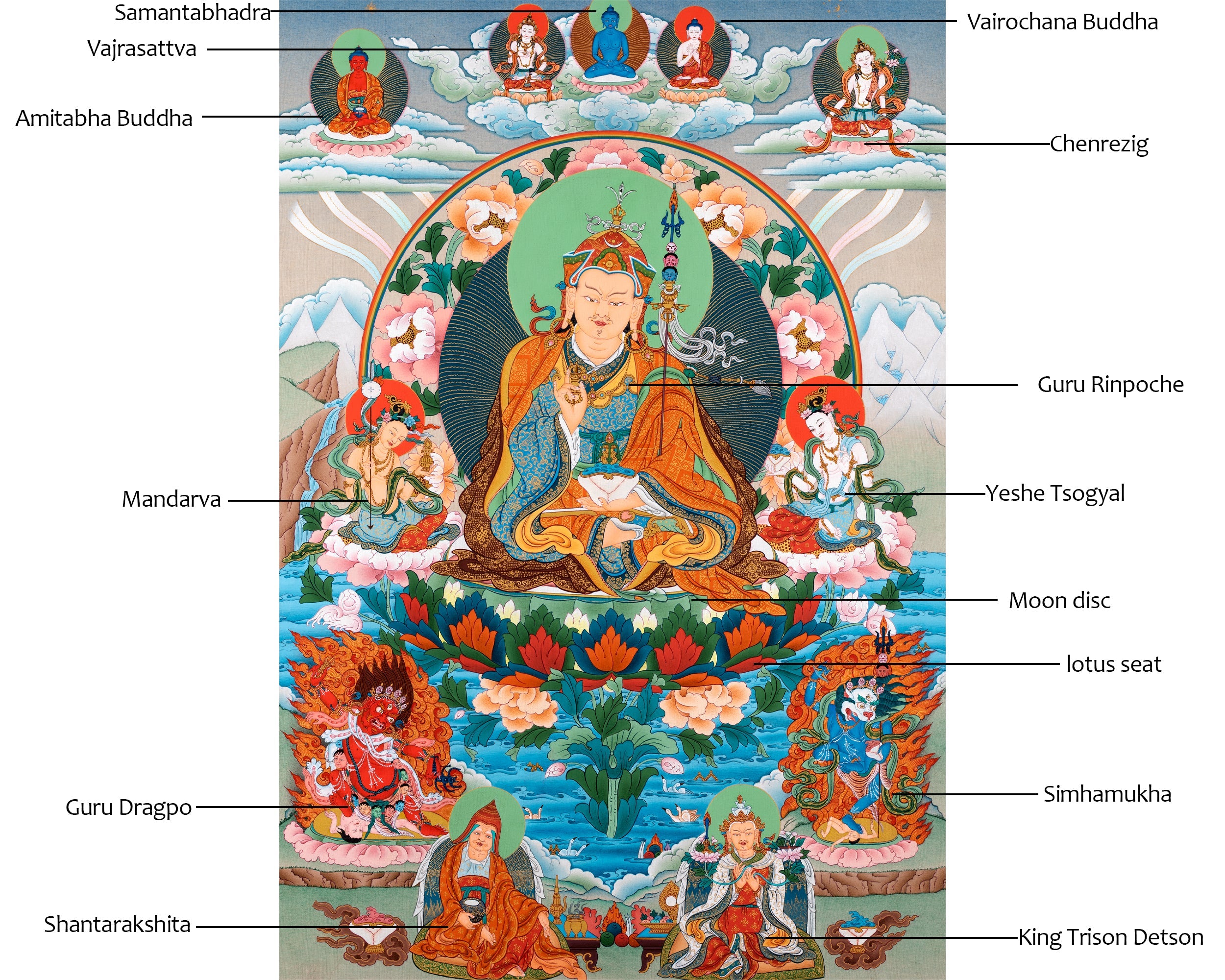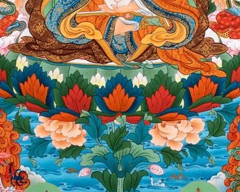 Guru Padmasambhava Thangka With Consorts, Buddhas And Bodhisattvas | Tibetan Art