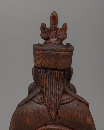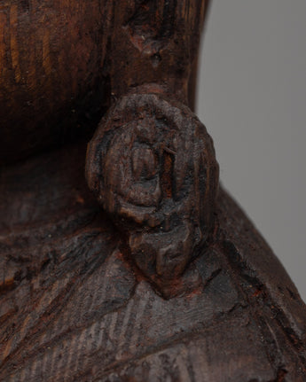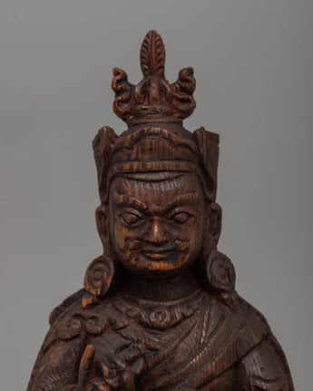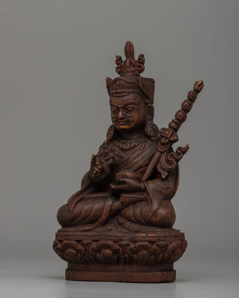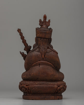 Tantric Master Guru Rinpoche Cedar Wood Statue | Sacred Buddhist Sculpture