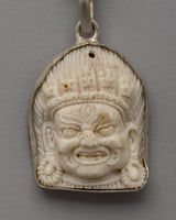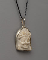 Hand-Carved Bhairav Locket with Five-Skull Crown | Buffalo Bone & White Metal