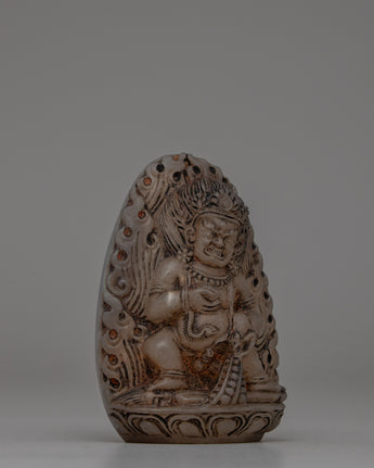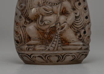 Welcome prosperity and compassion into your home with this hand-carved Black Dzambhala statue made of crystal . Dzambhala, known as the Tibetan God of Wealth, embodies the concepts of generosity and prosperity. He is a great deity who represents not just monetary wealth but also spiritual abundance via compassion and mindfulness.