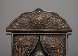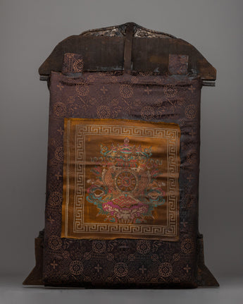A metal thangka is a type of thangka painting that is made on a metal surface rather than on traditional canvas or paper. Metal thangkas are often made using copper, brass, or silver and are usually decorated with intricate designs and Buddhist iconography using a technique called repoussé. This involves hammering the metal from the reverse side to create a raised relief image on the front. Metal thangkas are known for their durability and are often used in ritual contexts or as decorative pieces in Buddhist homes and temples. They are particularly common in Tibet, where they have been produced for centuries.