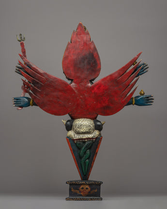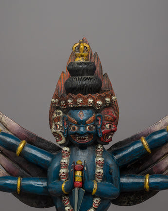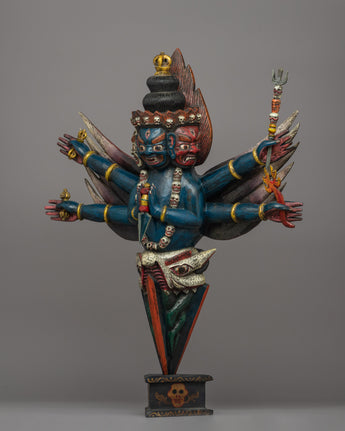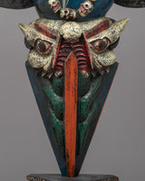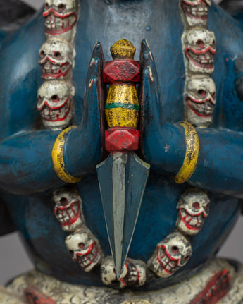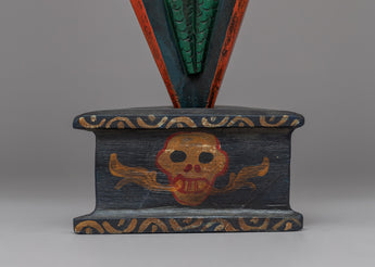 This Phurba weighs only 1.3 kg and is made of wood, making it lightweight and practical. It symbolizes the spirit of spiritual purification and has long been employed in ceremonies to drive out evil forces. Every element demonstrates the artistry and rich cultural legacy of Bhutanese artisans, from the magnificent skull designs to the deity's elaborate decorations.