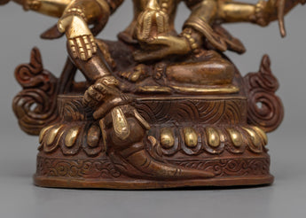 The statue is painstakingly handcrafted to ensure a high level of detail and quality. The use of copper as the base material increases the statue's durability and traditional appeal, while partial gilding with 24k gold highlights key aspects of the deity's iconography, increasing its sacredness and visual appeal. The gold gilding highlights the finer details and adds a touch of elegance.