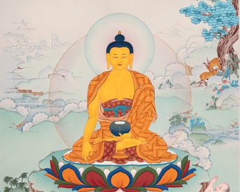 Hand-painted Buddha Shakyamuni Thangka | Karma Gardi Style Artwork on Canvas