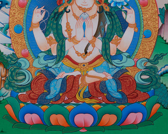 Hand Painted Chenrezig Thangka | Avalokiteshvara Thangka Art