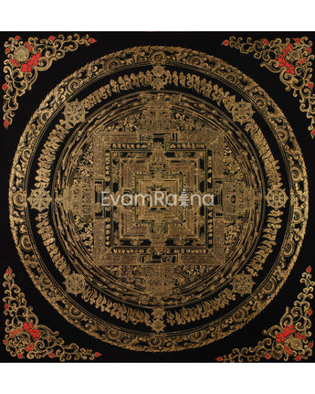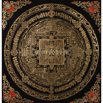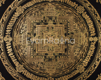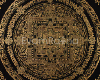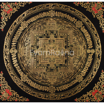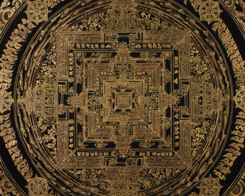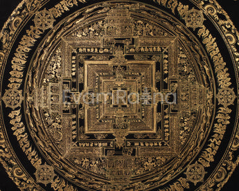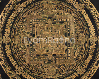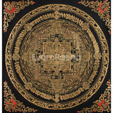 Hand-Painted Gold and Black Kalachakra Mandala :