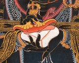 In the traditional Mahakala meditation style, we have portrayed Sakya Mahakala in this stunning Black and Gold thangka, with exquisite attention to detail. The black canvas is illuminated by pure gold, a style that is commonly used for wrathful deities. This thangka painting is a beautiful representation of the powerful Sakya Mahakala and will be a striking addition to any collection. You can use this thangka painting for various purposes, such as meditation, Buddhist rituals, and even home décor.