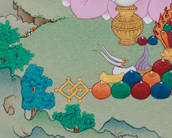 As requested for consecrations/blessings, we can take thangka to Monasteries/Rinpoches from nearby Boudha Stupa. We kindly ask you to offer $50 for the monasteries for blessings/consecration services.