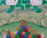 As per your request for consecrations/blessings, we can take the thangka to nearby monasteries or Rinpoches from the Boudha Stupa. We kindly ask that you contribute $50 to the monasteries for these blessing and consecration services.