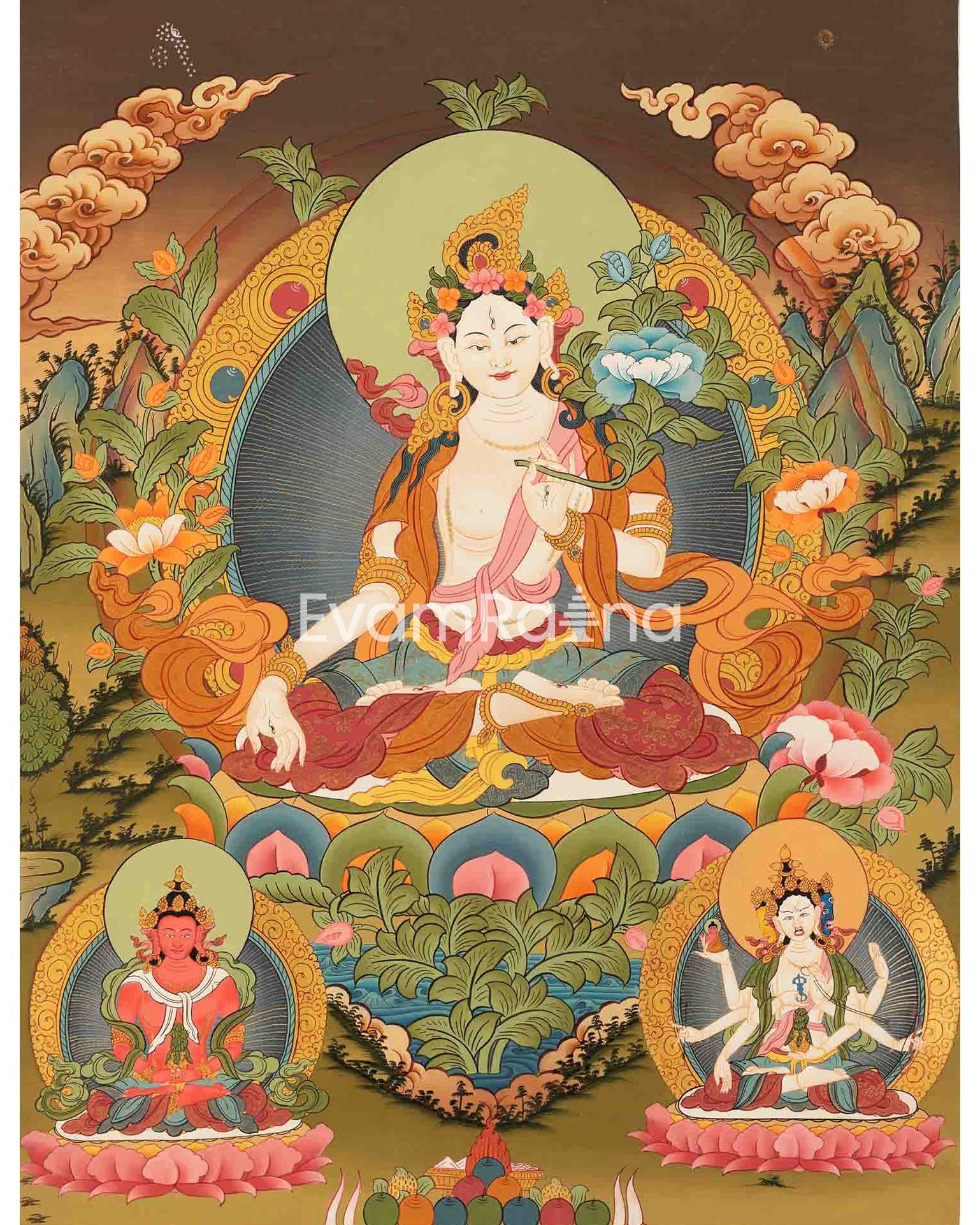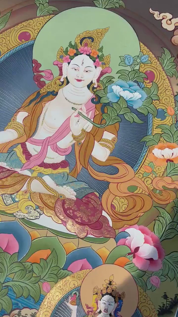 Hand-Painted White Tara Thangka | Tibetan Buddhist Thangka Wall Decor Painting