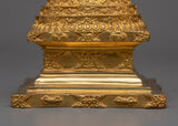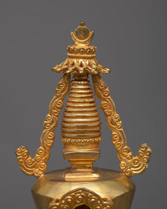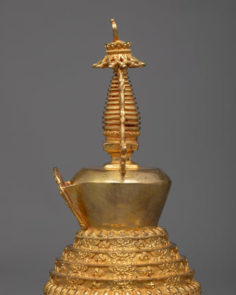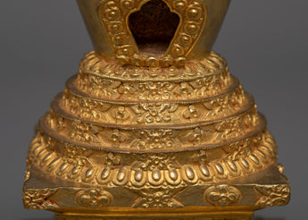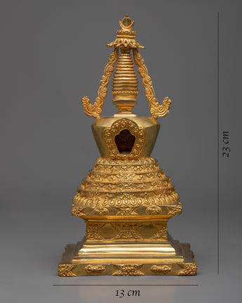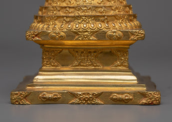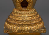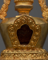 Accept the divine energy of our Handcrafted Buddhist Tibetan Stupa, an exquisite work of art that has been carefully created on a Copper body and lavishly plated in 24k gold. This stupa, which rises to a regal height of 23 cm, is an example of spiritual artistry.