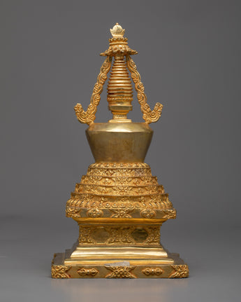 You will experience a strong connection to the core of Buddhism and its teachings as you study its intricate details. The stupa's gleaming gold exterior reflects both its fine craftsmanship and the inner radiance it can infuse into your sacred space.