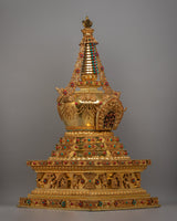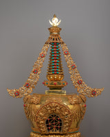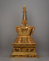Handcrafted Gold-Plated Tibetan Stupa | Perfect for Altars and Spiritual Decor