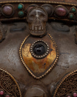 This mask, measuring 27 cm in height and 24 cm in width and weighing 1.46 kg, is the ideal statement piece for anyone offering to breathe spiritual strength and protection into their residence. Its attractive design, combined with the carefully craftsmanship displayed in each element, elevates it to more than just a sacred artifact; it becomes an exquisite decorative piece that enhances both the visual and spiritual atmosphere of any setting. Whether displayed in a meditation space, living room, or sacred shrine, the Mahakala Mask commands attention and admiration, prompting reflection on the nature of protection and the value of spiritual practice.