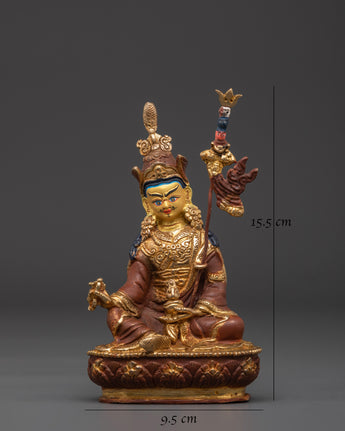 This exquisite Handcrafted Statue of Guru Rinpoche, standing at 15.5cm tall and 9.5cm wide, is a representation of the revered spiritual master and protector in Tibetan Buddhism. Crafted from copper and beautifully gold-plated, this statue reflects the grace, wisdom, and power of Guru Rinpoche, also known as Padmasambhava. As a key figure in the introduction of Buddhism to Tibet, Guru Rinpoche is venerated for his enlightenment teachings and his ability to dispel obstacles. This statue will serve as a constant reminder of his guidance and divine protection.