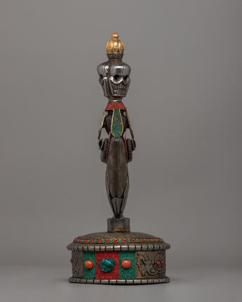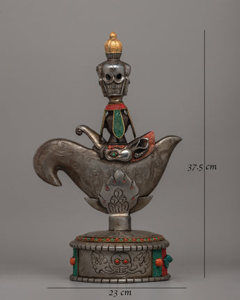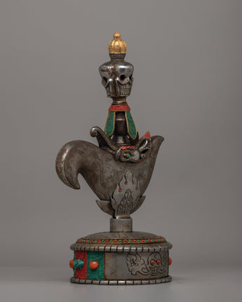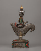 This Kartika Knife, weighing essentially 2.44kg perfectly balanced, can be used as both a helpful ritual tool and a gorgeous highlight for altars and meditation spaces. Its intricate design represents spiritual value, making it an essential addition to any collection or spiritual practice. This Kartika Knife is an essential for everyone who practices Buddhism or appreciates sacred Tibetan art.