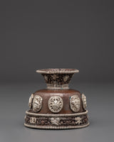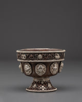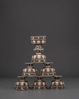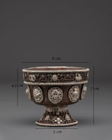 Elevate your spiritual rituals with this Handmade Buddhist Ritual Offering Bowl Set. Each bowl, made from Oxidized copper and elegantly silver-plated, is thoughtfully crafted to honor Buddhist traditions. Measuring 7cm tall and 8cm wide, these bowls are ideal for presenting symbolic offerings during meditation or ceremonial practices. Their exquisite craftsmanship and quality materials make them both practical and beautifully artistic additions to your altar or sacred space.