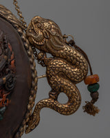 This Tibetan Snuff Bottle is a stunning piece of art, made of white metal and detailed carved resin. This bottle's traditional and ritual design symbolizes Tibet's rich cultural heritage, making it a unique relic. This bottle, which is 31.5 cm tall, 23 cm wide, and weighs 1.048 kg, exemplifies a combination of aesthetic beauty and cultural value.