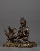 This beautiful Shakyamuni Buddha statue depicts the historical Buddha seated on a rectangular lotus base. The Buddha is shown holding an injured bird in his hands, symbolizing his compassion and protection for all living beings. The serene expression on his face and the intricate details of his clothing and jewelry add to the overall beauty and elegance of the statue. This statue is a perfect piece for meditation spaces, altars, or simply as a piece of decor in any room. The intricate craftsmanship and attention to detail make this Shakyamuni Buddha statue a true work of art, sure to inspire and captivate.