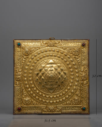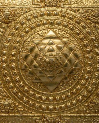 Crafted from excellent brass, this magnificent handmade intricate metal Mandala wall art exhibits a harmonic fusion of precise creativity and endurance. It weighs 0.93 kg and measures 32 cm in height by 31.5 cm in breadth. Its delicate design counterbalances its powerful presence. The mandala, a sacred emblem in Tibetan Buddhism, signifies the universe's complicated structure and the path to spiritual awakening. Every intricate design and concentric circle exhibits oneness.
