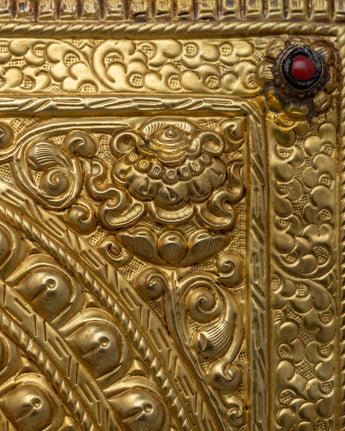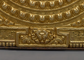 This metal mandala thangka, ideal for displaying on an altar or in a meditation room, is a potent instrument for spiritual development and attention. It also makes a wonderful gift for people who want to strengthen their connection to Tibetan Buddhist traditions. With its timeless style and significant symbolism, this sculpture adds aesthetic beauty and spiritual blessings to any space.