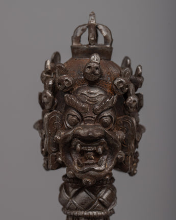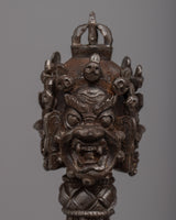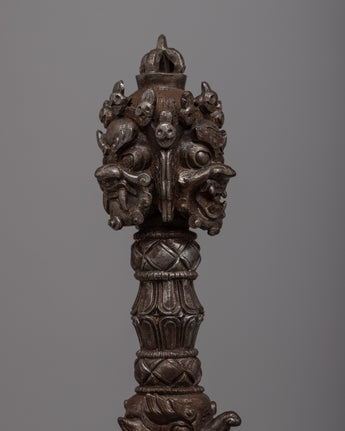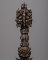 The Phurba's presence is enhanced by the included stand, which turns it into a commanding focal point in any sacred area. It is not only for show. This Phurba Dagger is made of iron and has a deep, intricate design that reflects the depth of traditional ritual art. It is strong and durable. It is the epitome of spiritual resilience and is suitable for both enthusiasts and practitioners.