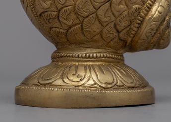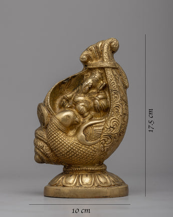 The Jai Ganesh Statue is a lovely depiction of Lord Ganesh. This handcrafted statue on a brass body captures the essence of Ganesh in a unique and artistic way. Lord Ganesh is shown here relaxing on a conch, which is a symbol of auspiciousness and divine energy. Lord Ganesh, also known as the Remover of Obstacles, is a Hindu deity associated with wisdom, intellect, and good fortune. The use of brass and the intricate craftsmanship add to the charm and elegance of this Jai Ganesh Statue, making it a meaningful and eye-catching piece of art.