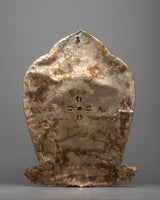 A metal thangka is a type of thangka painting that is made on a metal surface rather than on traditional canvas or paper. Metal thangkas are often made using copper, brass, or silver and are usually decorated with intricate designs and Buddhist iconography using a technique called repoussé. This involves hammering the metal from the reverse side to create a raised relief image on the front. Metal thangkas are known for their durability and are often used in ritual contexts or as decorative pieces in Buddhist homes and temples. They are particularly common in Tibet, where they have been produced for centuries.