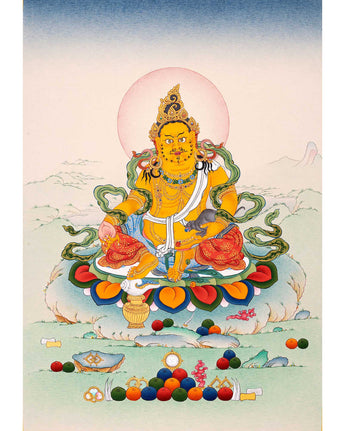Note: Jambhala Thangka is an original painting from Enlightenment Studio located at Boudha Stupa.