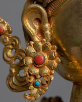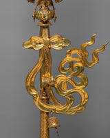 Our Khatvanga is elaborated with beautiful decorations. This specific set comes with a stand that is unique, and the circular rings include beautiful hand carvings. Giving this gold-plated Khatvanga to your friends, family, and other loved ones as well as to oneself would be a special gesture.