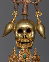 Khatvanga is a stick with a skull on top that is commonly used in Tantric rituals. It is also depicted in the hands of the oldest known Tantric pictures in the Indic world. It comprises of a short stick topped by a single skull from which a vajra emerges.