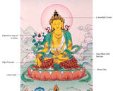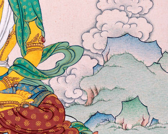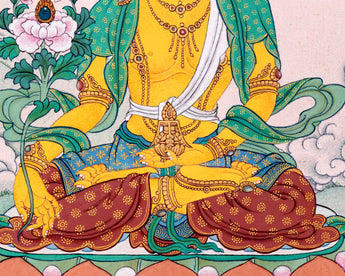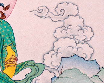 Beyond the visual elements, a Ksitigarbha thangka carries deep symbolic meaning rooted in Buddhist cosmology and teachings. This is intended to inspire devotion, contemplation, and a deeper understanding of the bodhisattva's compassionate vows and role in guiding sentient beings towards enlightenment