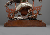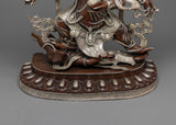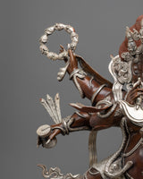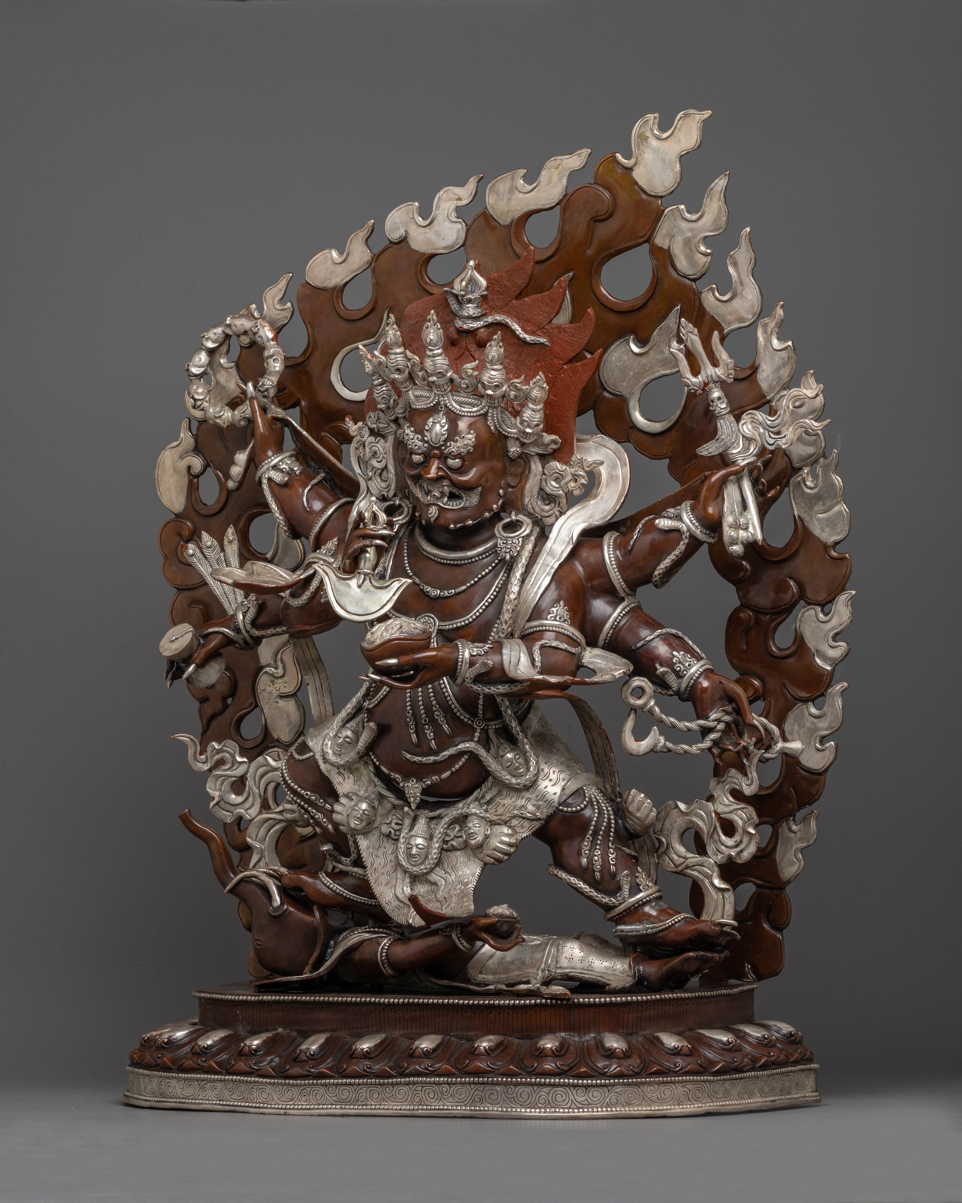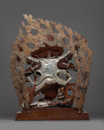 Large Six Armed Mahakala Statue | Handmade Oxidized Copper and Silver Plated Figure of Buddhist Protector
