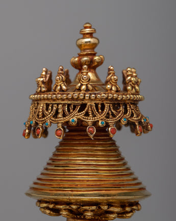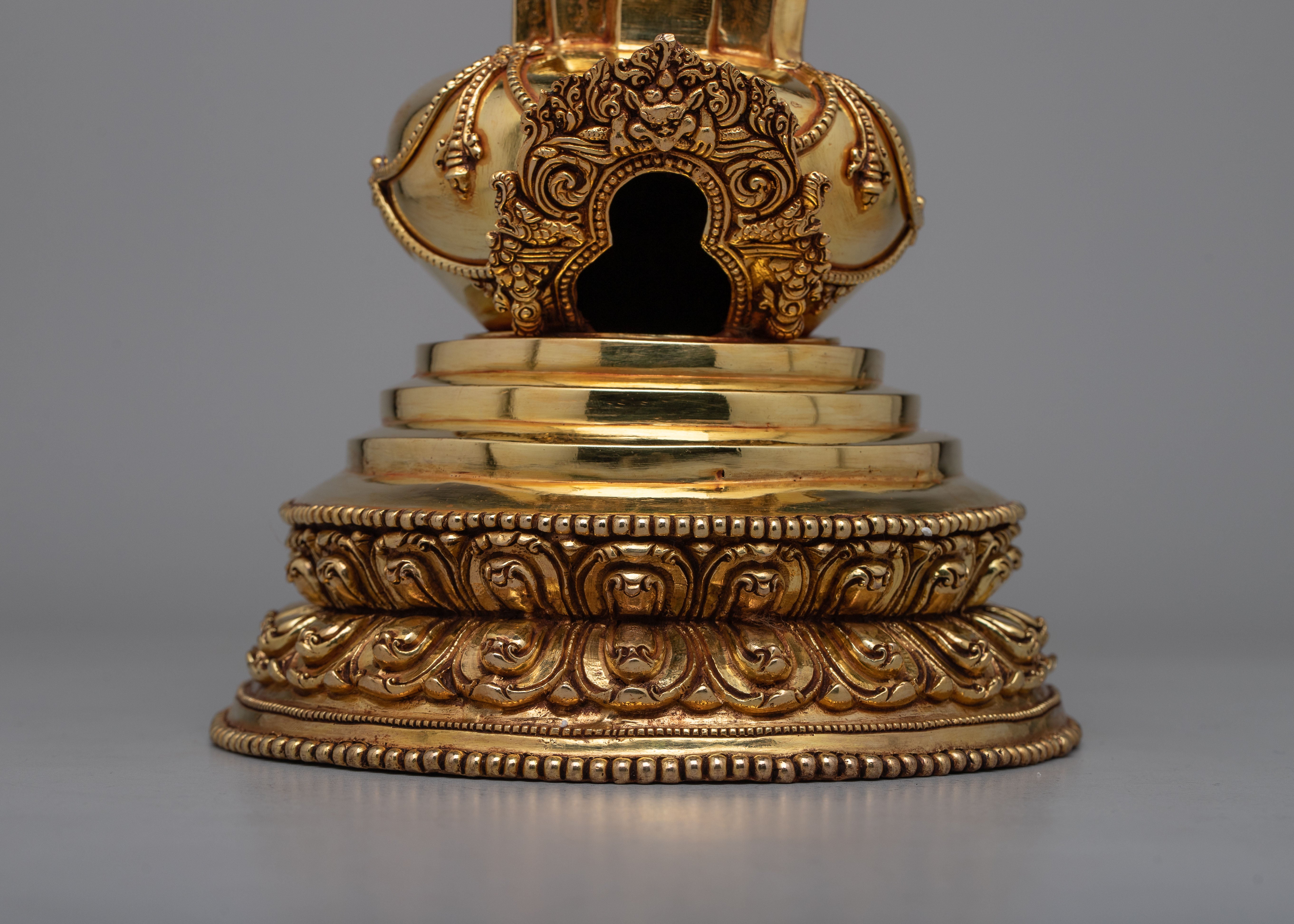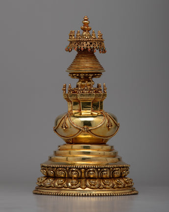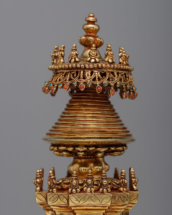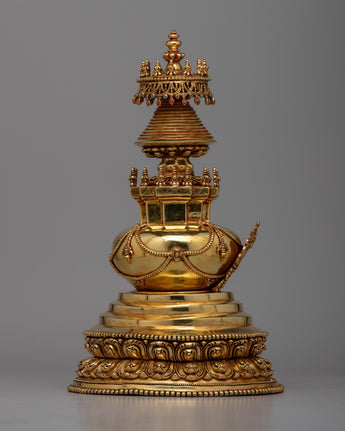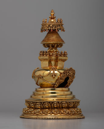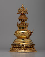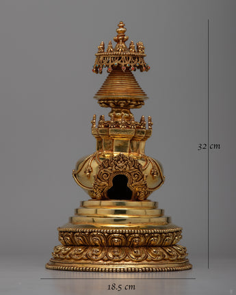 This stupa, which is enhanced by a layer of 24K Gold Plating and represents the Buddha's everlasting wisdom and compassion, glows divinely. Because of its excellent craftsmanship, which guarantees longevity and durability, it will be treasured for many generations to come.