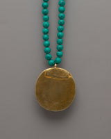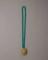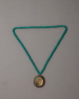 The OM Necklace, carefully crafted on a copper body by expert artisans, is a symbol of spiritual significance and divine connection. The necklace, adorned with a turquoise stone, radiates inner serenity and tranquillity. The locket's electrogold plating enhances the piece's visual attractiveness by adding a hint of refinement and elegance.